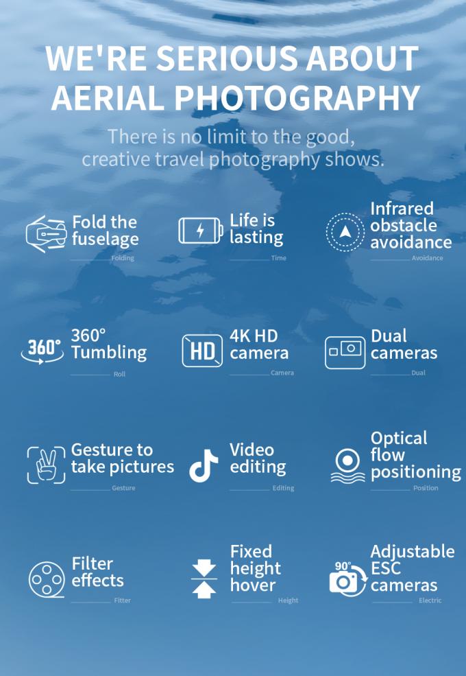 โหมดโง่, โหมดรักษาระดับความสูง, ด้วยกล้อง, พร้อมไฟ LED, พร้อม G-sensor, การพลิก 3D, การขึ้น / ลงจอดด |